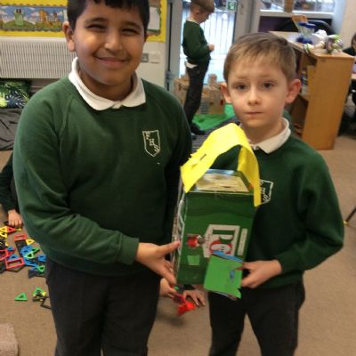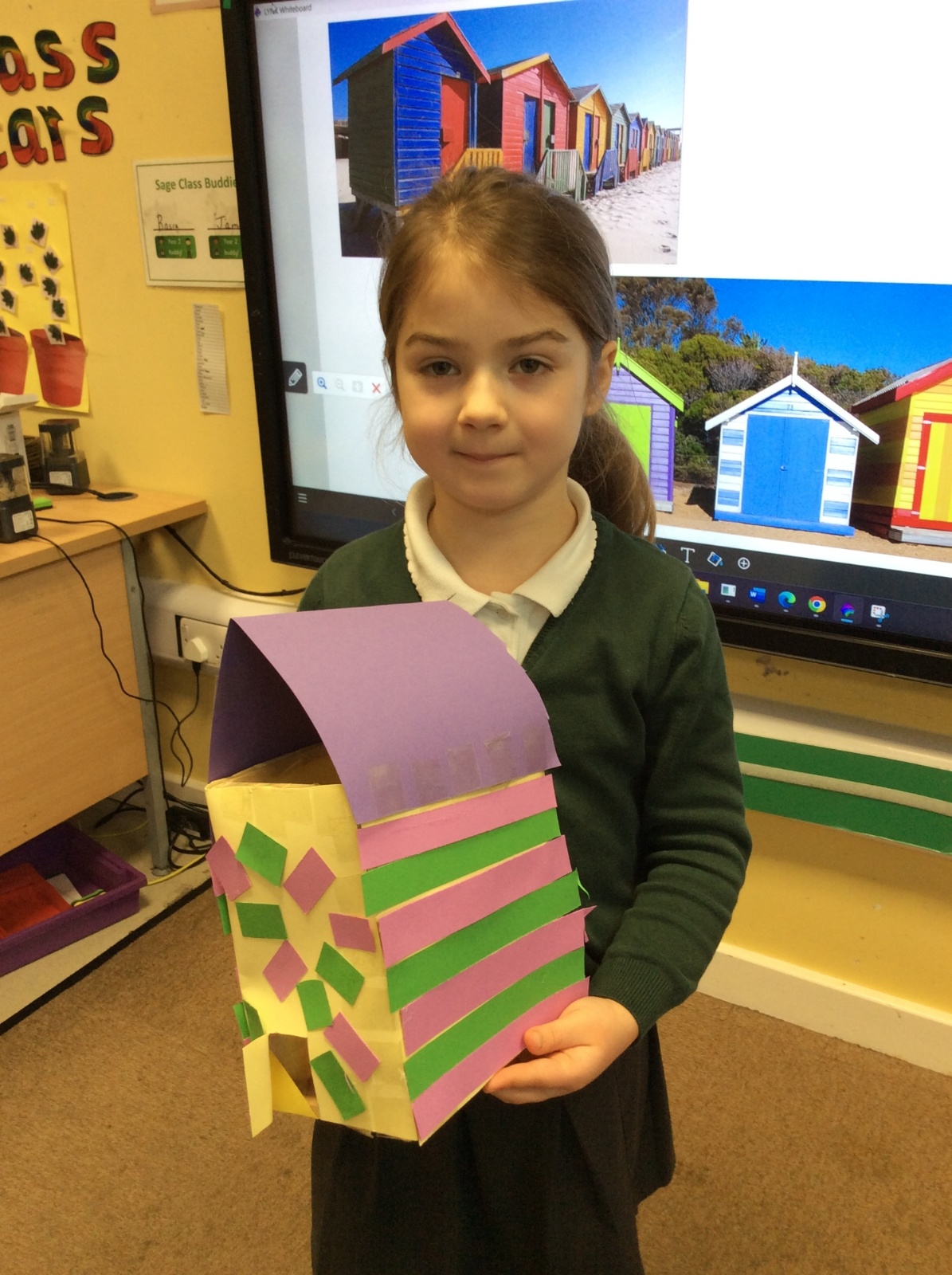 Year 2 had a fantastic DT Engage Day, creating their own beach huts. They first used recycled cardboard boxes, then worked with an adult to saw and glue a wooden frame. Finally, they decorated their beach huts by adding walls, a roof, doors and windows. The children showed great creativity and teamwork throughout the day.
