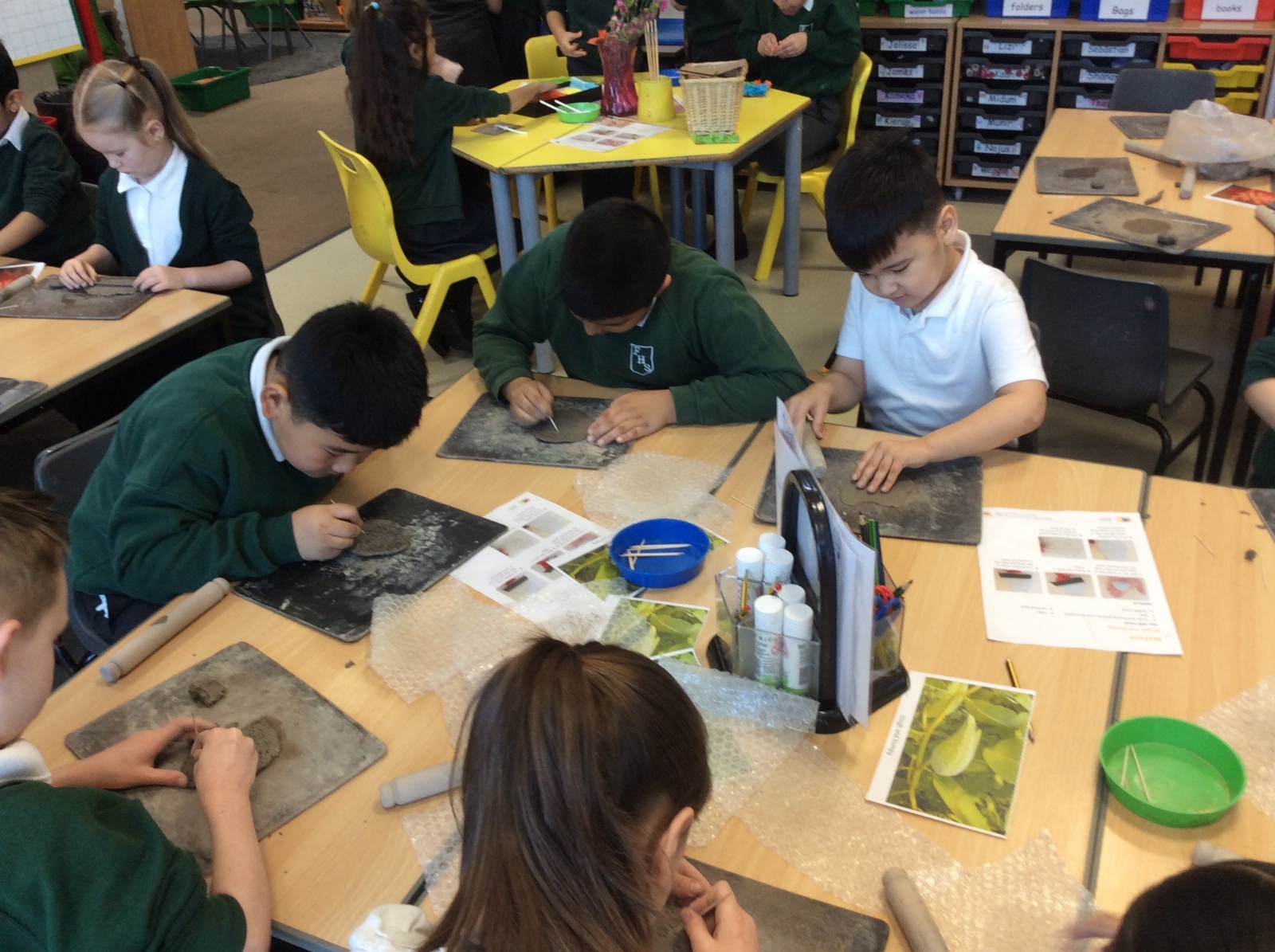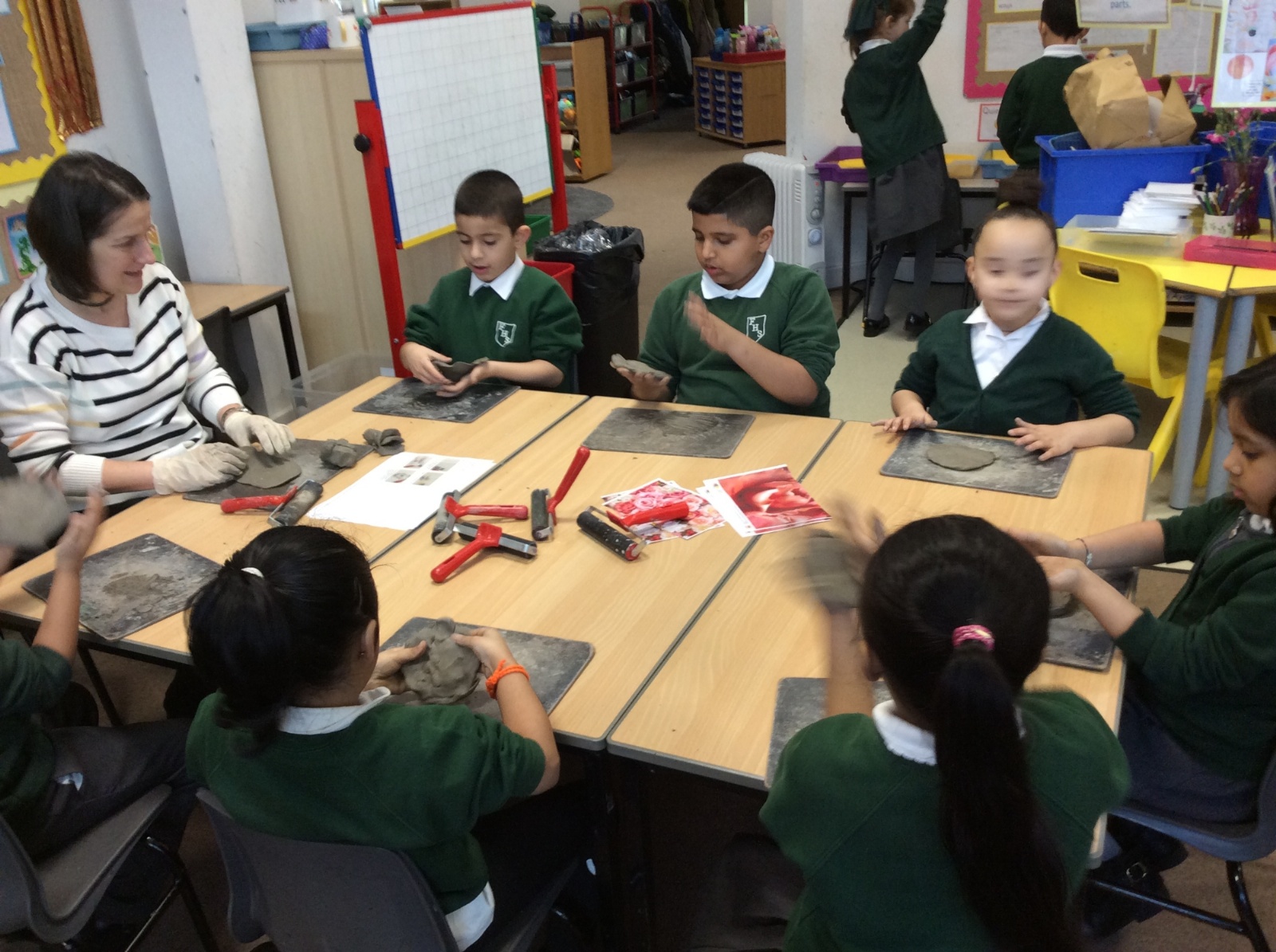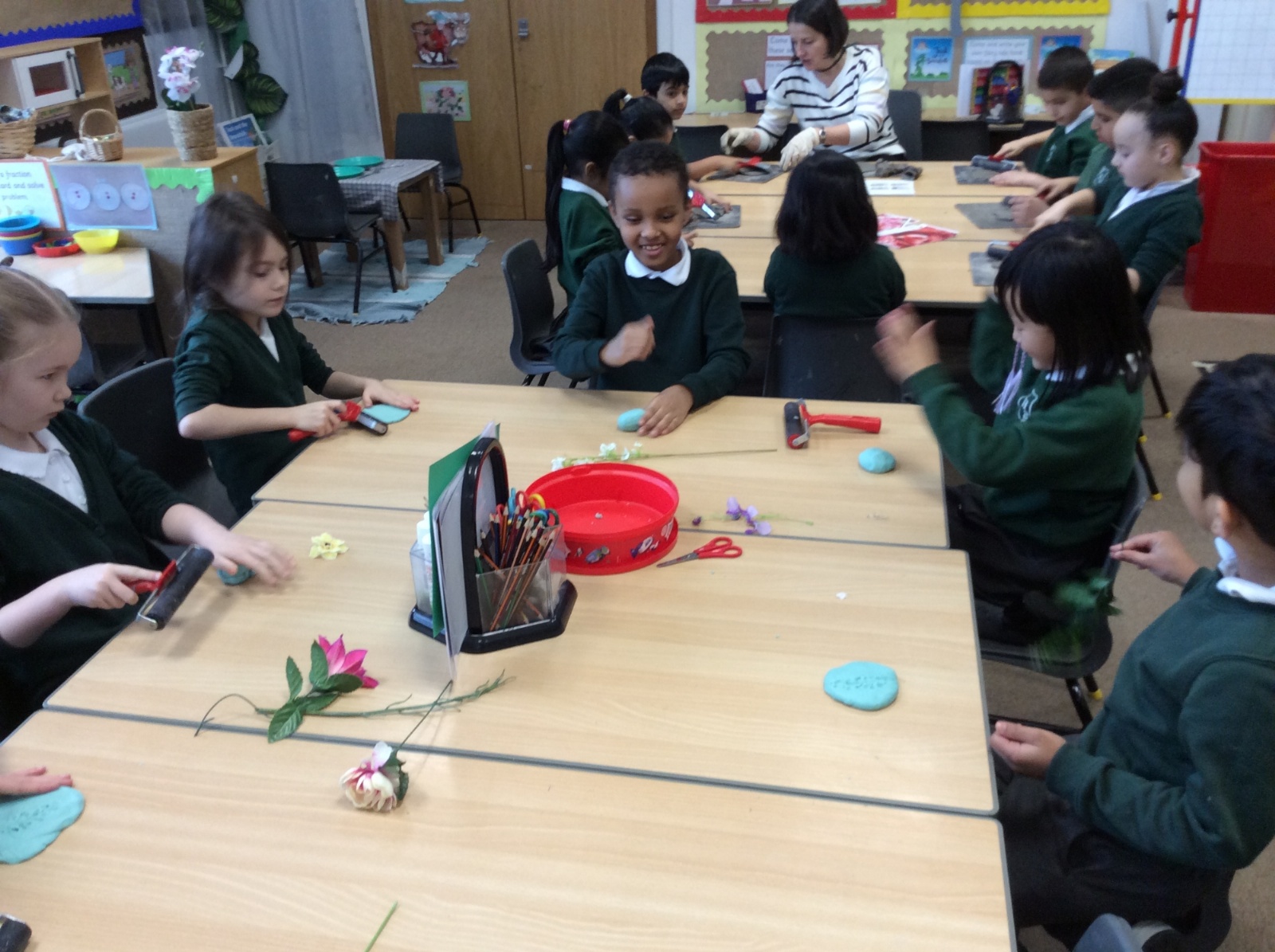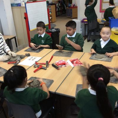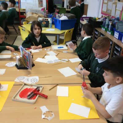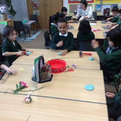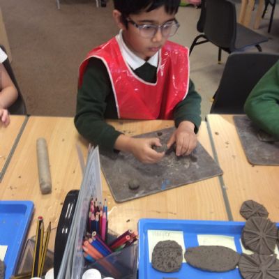 Year 2 had a wonderful Art Engage Day, where we explored shapes, forms, colours, patterns and textures found in the world around us. The children enjoyed a range of creative activities that encouraged them to experiment with different materials and techniques. Using clay and a variety of tools, the children carefully created their own clay flowers, thinking about shape and form as they sculpted their designs. They also experimented with texture in clay, using tools to create sharp and spiky patterns on the surface.